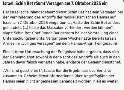 hier waren gestern die Horrorszenen vom 7.Oktober dokumentiert heute nicht mehr zugänglich, als Folge der isr. Versäunisse selbst plus 70 jähriger Okkupation.