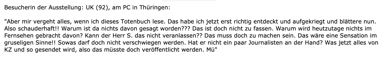 Jetzt ist es doch gelungen Das Buch vorzulegen in dem die Namen der Toten von 1945 verzeichnet sind. Anlass zu Fragen an uns alle. Eine Antwort ist diese.