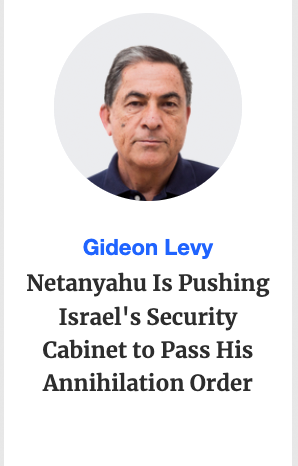 For the first time in Israel's history, the security cabinet is slated to make a decision on annihilation on Thursday. Prime Minister Benjamin Netanyahu's plan to occupy the Gaza Strip, which clearly no one in the security cabinet will challenge, means confirming the killing of thousands of people, demolishing the living conditions of more than two million walking dead and carrying out the final destruction of a busy, crowded strip of land where people once lived, but will no longer.