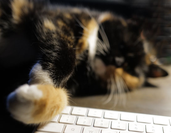Nach Mitternacht. Die Katze schnurrend sich kleinmachend auf dem Tisch neben dem Computer, Mozart des Nachtkonzerts, nun erstmal Pause des Schlafs. Denke dass ihr der Mozart lieb ist.