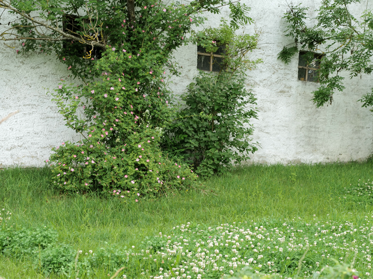 O. hat die Terrasse hinten zum Park gerettet. Fallrohr vom Dach in die Mauerecke geleitet, dass alles zusammenbrach, Mauer und Haus. Zum Abriss bereitet. Nur er, gegen Anordnung, wagte die Erneuerung. Abriss brachte viel Geld, Aktion nach 1990 Schandfleck(Gutshäuser/Ställe/Scheunen) beseitigung.
