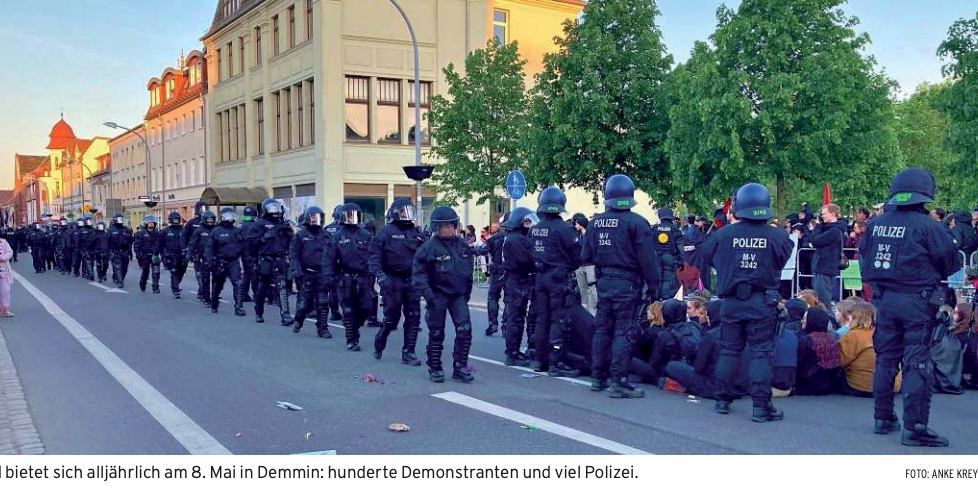 Da hinten erstes Aufgebot der Kämpfer für den 8. Mai in Demmin