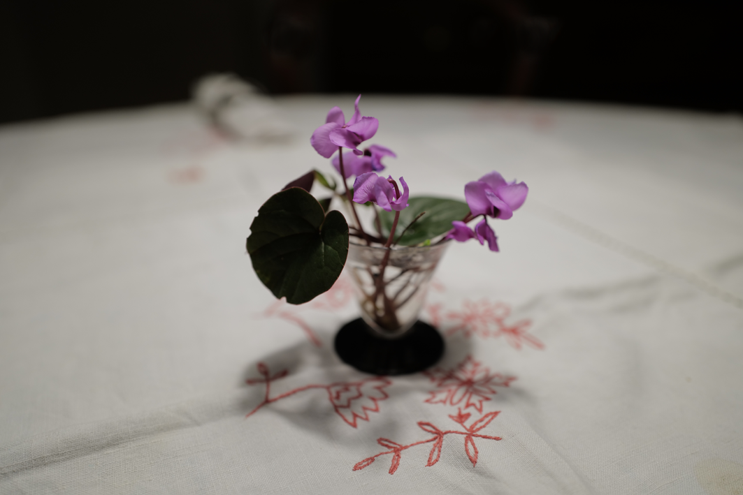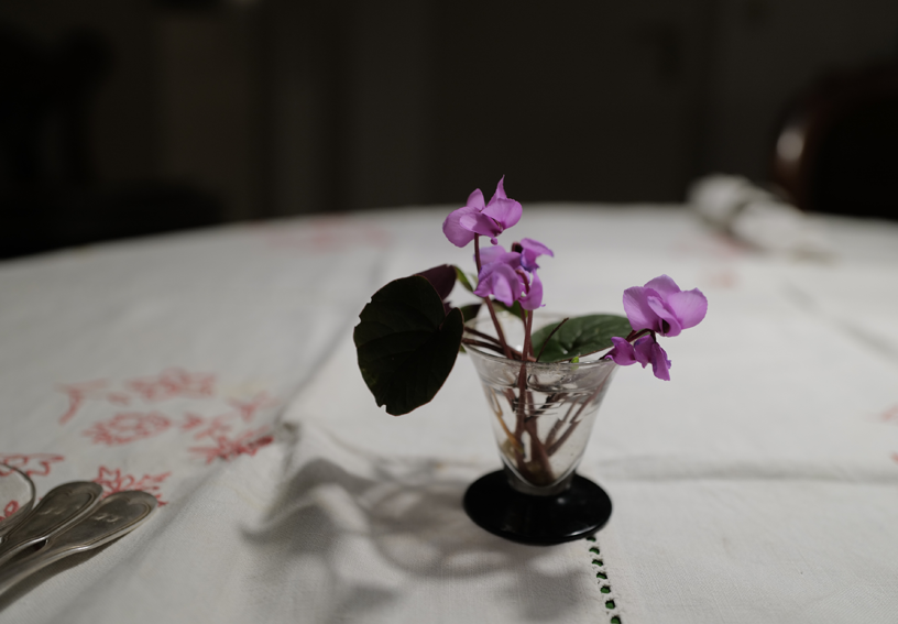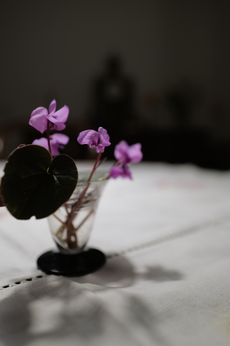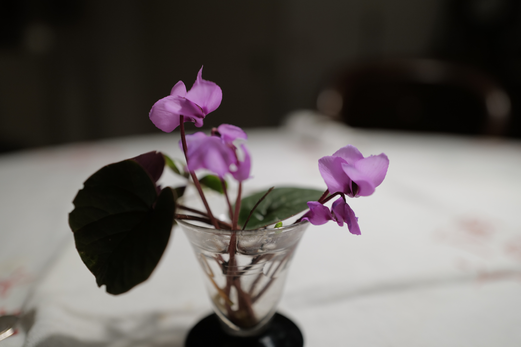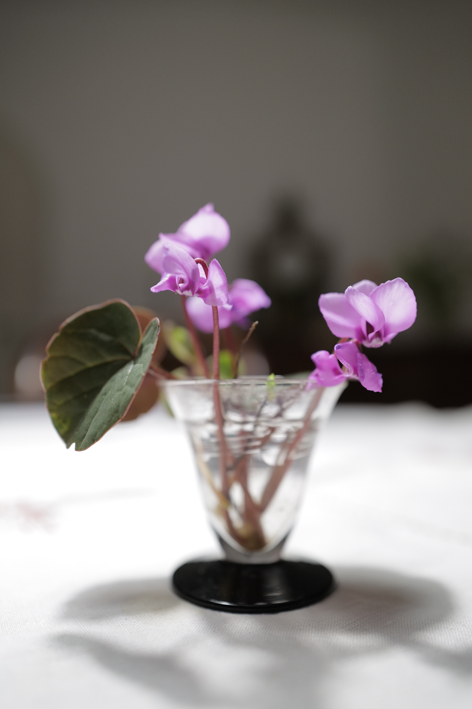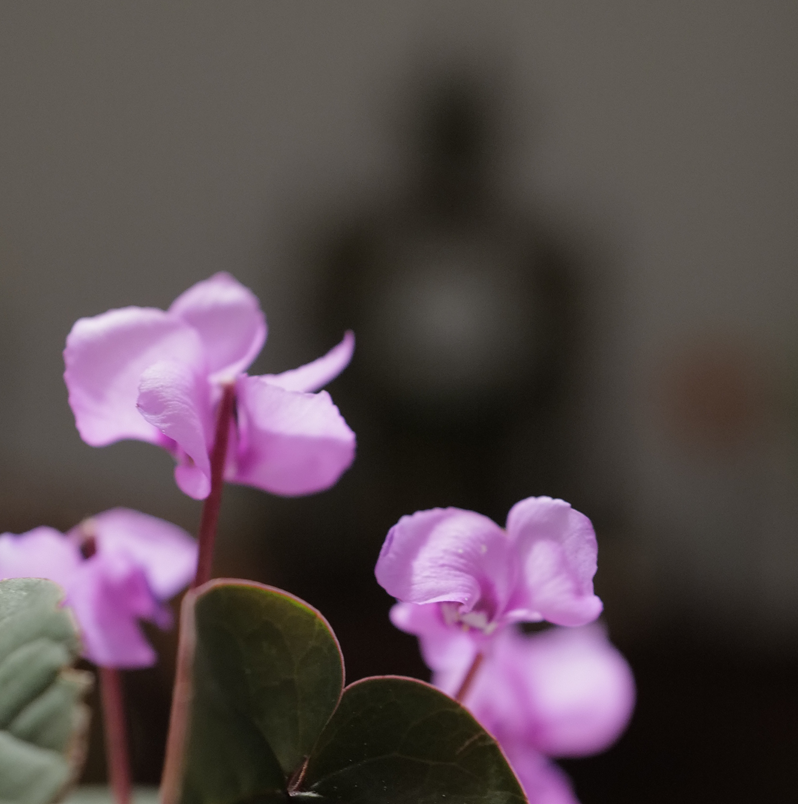 Jetzt sind sie wieder da als erste immer, ausgewildert aus einer Topfpflanze, Zyklamen klein nun draussen nach dem Frost und Schnee.