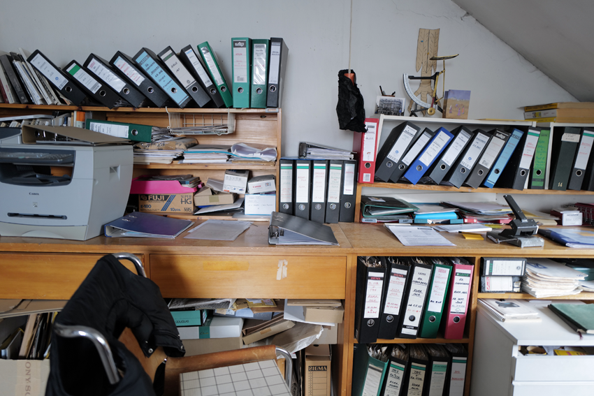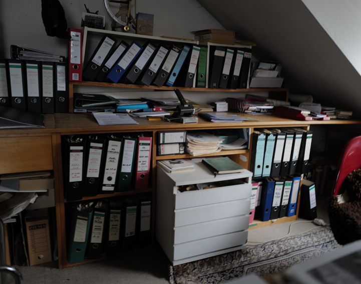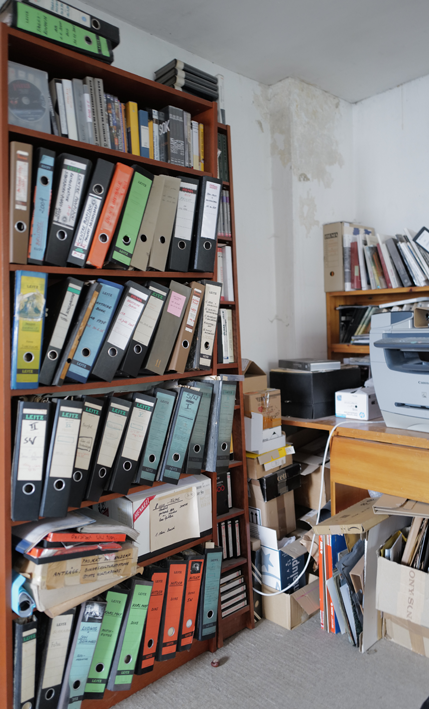 Schneidetisch aller Filme hier auf Zelluloid im ehem.Schneideraum dazu, Keller des Hauses.