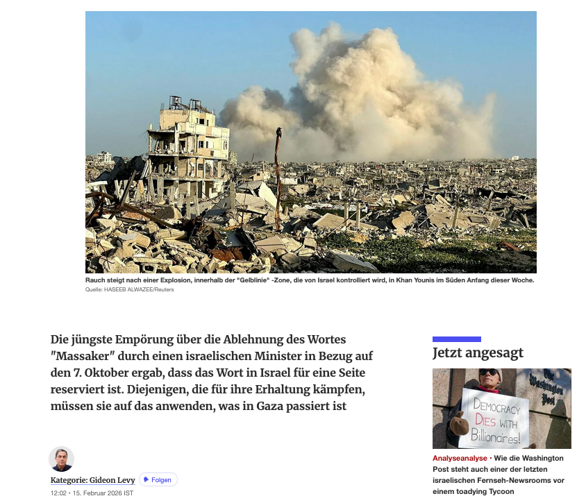 Das wütende Argument, das in den letzten Tagen über den dummen Versuch der Regierung, das Massaker, das wir erlitten haben, aus den Augen der Menschen auszulöschen, ausgebrochen ist, kann nur ein bitteres Lächeln hervorrufen. Nichts könnte ironischer sein: Nach mehr als zwei Jahren, in denen der öffentliche Diskurs völlig darauf verzichtete, das Wort "Massaker" oder seine Synonyme für die Beschreibung dessen zu verwenden, was die israelischen Verteidigungskräfte den Bewohnern von Gaza antaten; nach mehr als zwei Jahren, in denen Israel versuchte, sich selbst und der Welt zu sagen, dass das einzige Massaker, das stattfand, das Massaker an Israelis war; über zwei Jahre, in denen das Opfer, in dem Israel nur für sich und die Welt zur Schau gestellt wurde