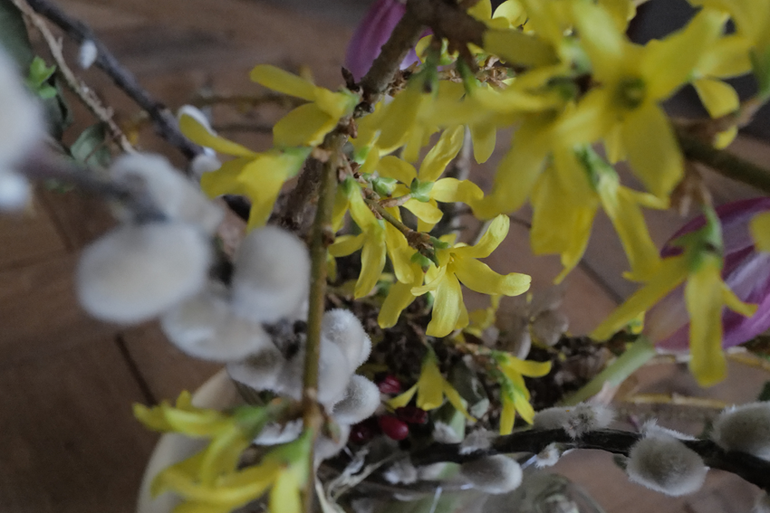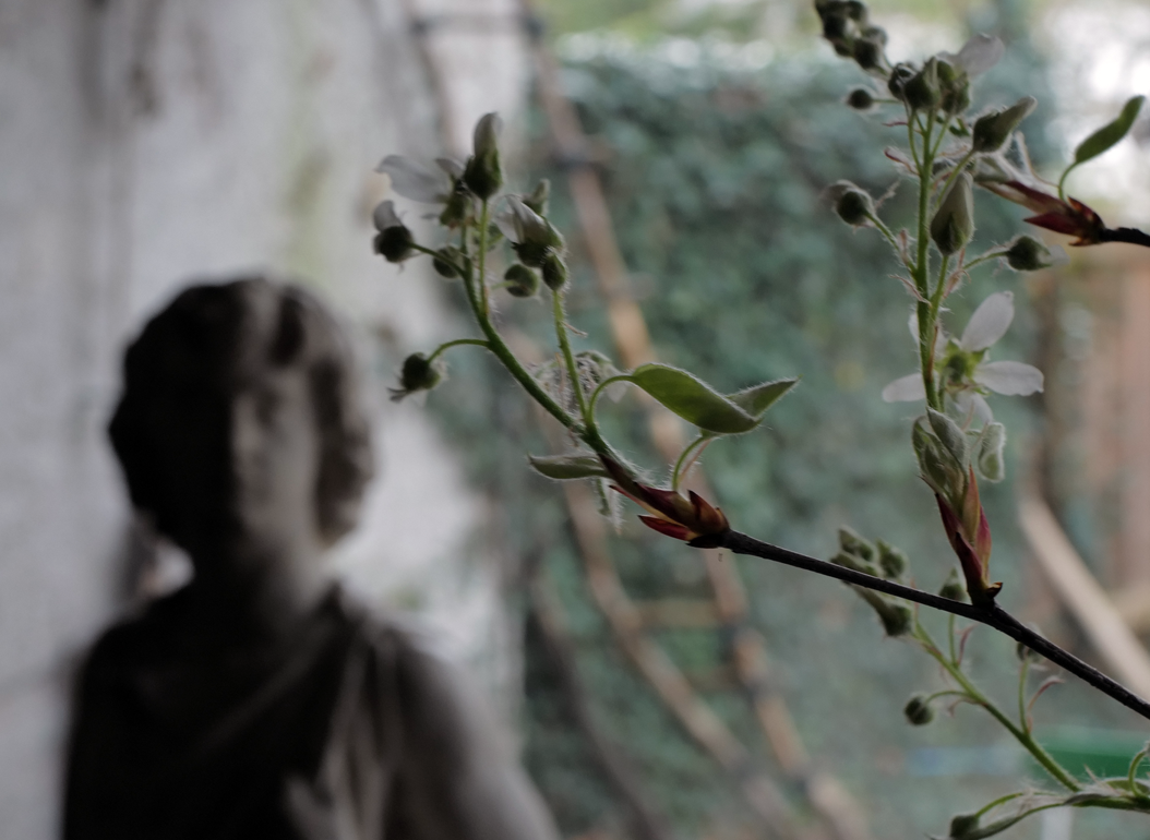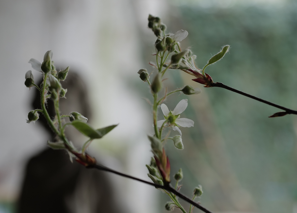 jetzt sind sie ausgekrochen nach drinnen geholte Zweige der Felsenbirne