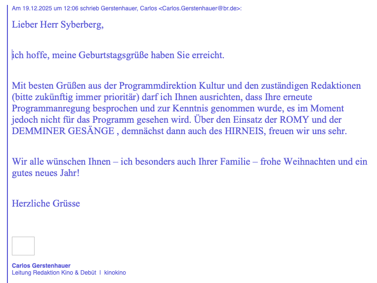 Sammelgruss als Antwort auf die Vorlage des aktuellen Films Nachtgesang. Was einer Antwort bedarf. Öffentlich.