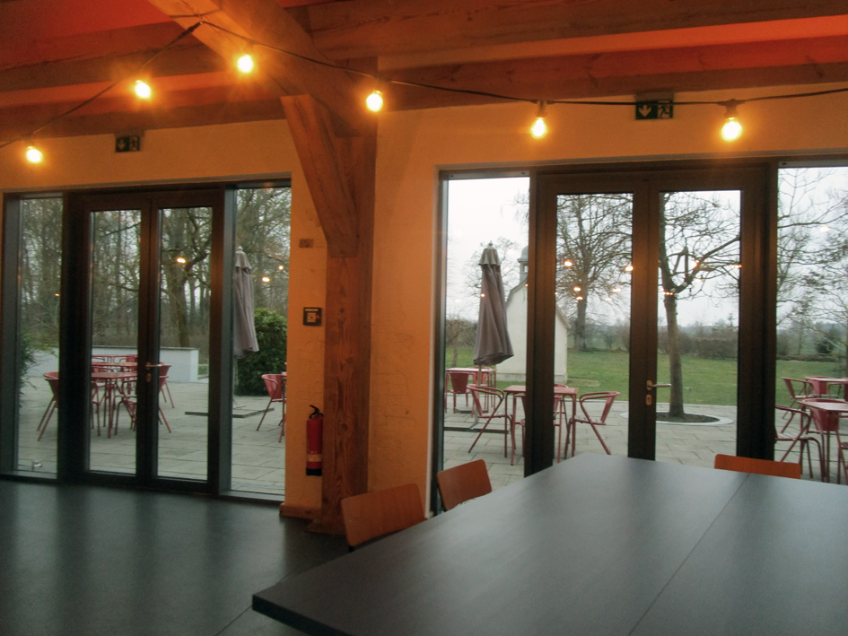 Wiederhergestelltes Tansformatenhaus wie alles hier aus Ställen und Speichern zum Gutshaus neu mit Park wurde, offen an diesem Tag rundum.