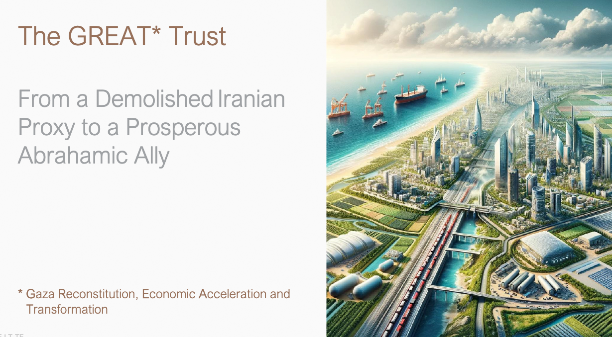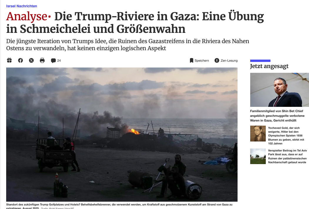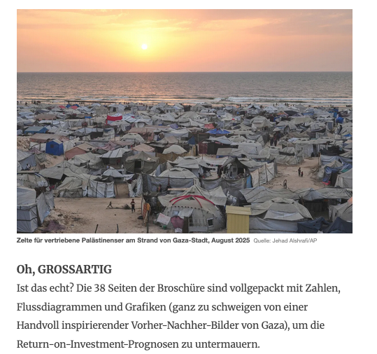 Trump-Promenade. Der klassische Fall von europ. Kolonisation. Diesmal aus Amerika in Palestina . Nach der Bibel Endzeitvisione mit Apokalypse davor (A) ohne Rettung. Die Schaafe werden von den Juden selbst zur Flucht begleitet.