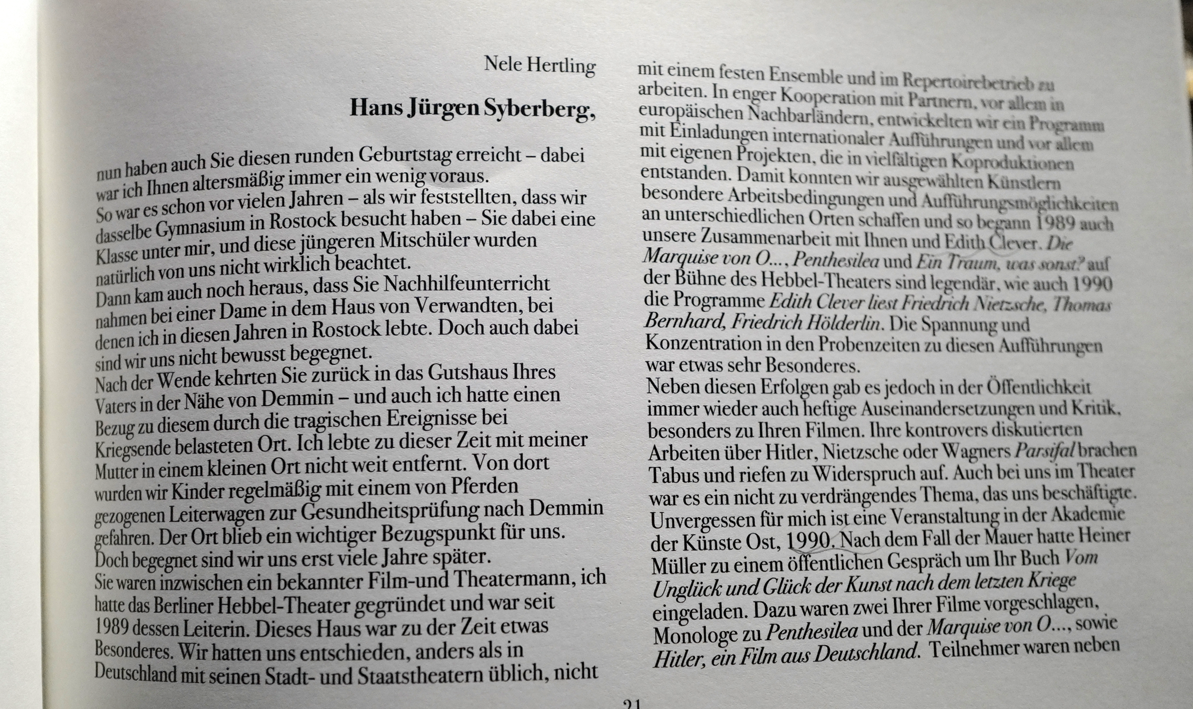Mit Nele Hertling der Intendantin des Hebbel-Theaters, als wir die Clever- Monologe mit Frankfurt und Paris und dann bis Lissabon und Moskau herstellen konnten.