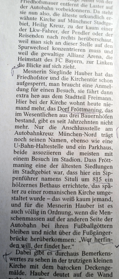 In der FAZ dieser Bericht zur ältesten Kirche Münchens . Bisher nie wahrgenommen, Ob wohl als Zielort der U-Bahn in unsere Richtung führend und diverse München Prüfungen zur Geschichte der Stadt in der Universtät bestanden.