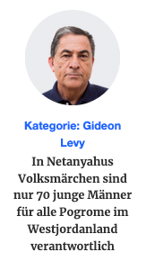 Die Pogrome könnten innerhalb weniger Tage viel leichter eingedämmt werden als der palästinensische Terrorismus, aber Israel will den jüdischen Terrorismus nicht eindämmen. Es gefällt allen Siedlern und den meisten Israelis, wenn auch insgeheim, weil es das ultimative Ziel vorantreibt - das Land seiner palästinensischen Bewohner zu reinigen.