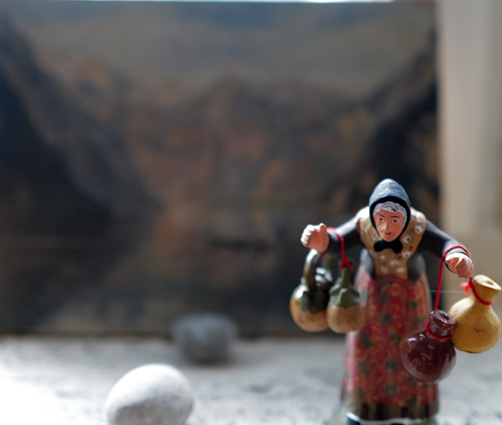 auch die Bäurin mit den Gefäßen.