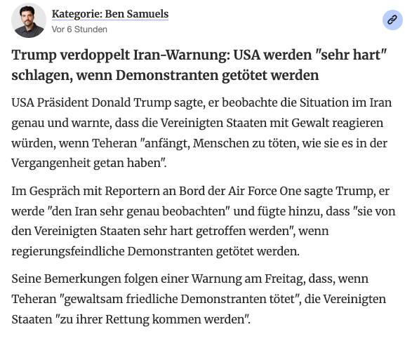 Trump hatte in einem Telefoninterview mit dem Magazin „The Atlantic“ deutlich gemacht, dass nach der Gefangennahme von Venezuelas Präsident Nicolas Maduro durch die USA auch andere Länder Ziel einer US-Intervention werden könnten. „Wir brauchen Grönland, absolut“, sagte Trump und bekräftigte damit frühere Äußerungen von ihm selbst und aus seiner Umgebung.