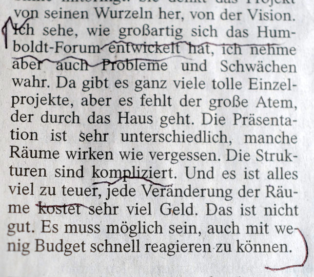 Zu diser Leere nach Abzug der zurückgegebenen Artefakte aus Übersee im zentralen Schloss Berlins nun wieder.
