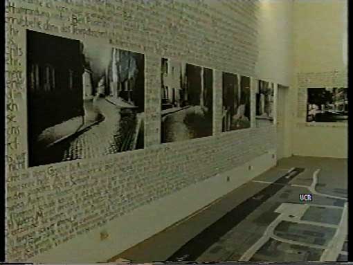 An der Wand das 1ooo-Seiten-Manuskript zu GERTRUD, Monolog der Mutter.Gestorben 1993.