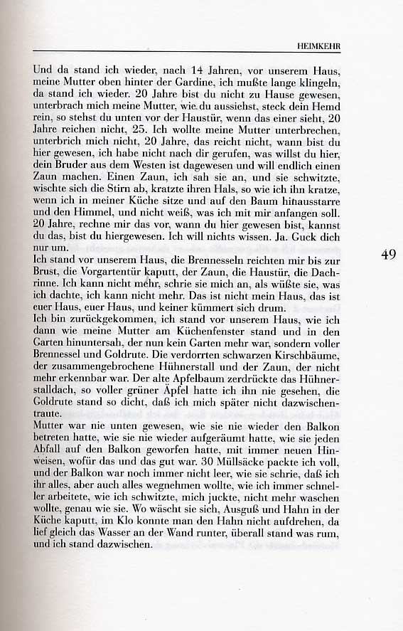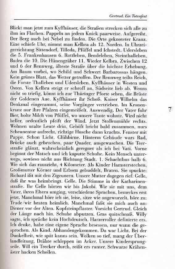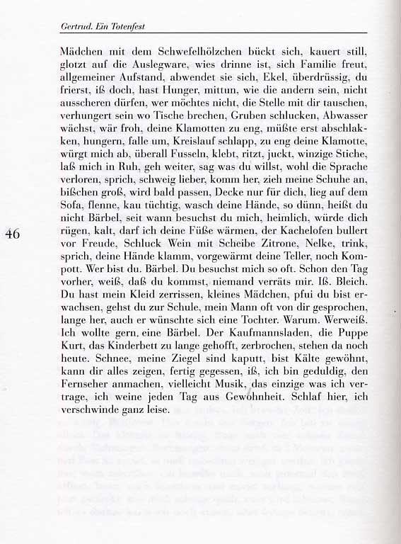 Das ist es nun wieder . Das Problem der monologischen Darstellung. Hier, wie sie zur Figur wird. Ihrer Selbst. Daser, der Autor seiner Selbst-Darstellungen, zuletzt immer mehr auf der Bühne, nicht dulden konnte und doch suchte. In wem. Und dann ohne Gleichen. Nur über den Tod. Als Gabe. Hommage. Mit der Noblesse des anderen Ich. Als Frau. Mann. Theater der Abgründe. Wo es wieder beginnt. Und unseren Techniken gemäss. Jene neuen Forschungen aufnehmend. Auf dem unsichtbaren Seil der Unmöglichkeit einzig erlaubt. Unter dem Hohn und Gelächter oder kaum zu glaubender noch immer sich ereigender Erkenntnisse.