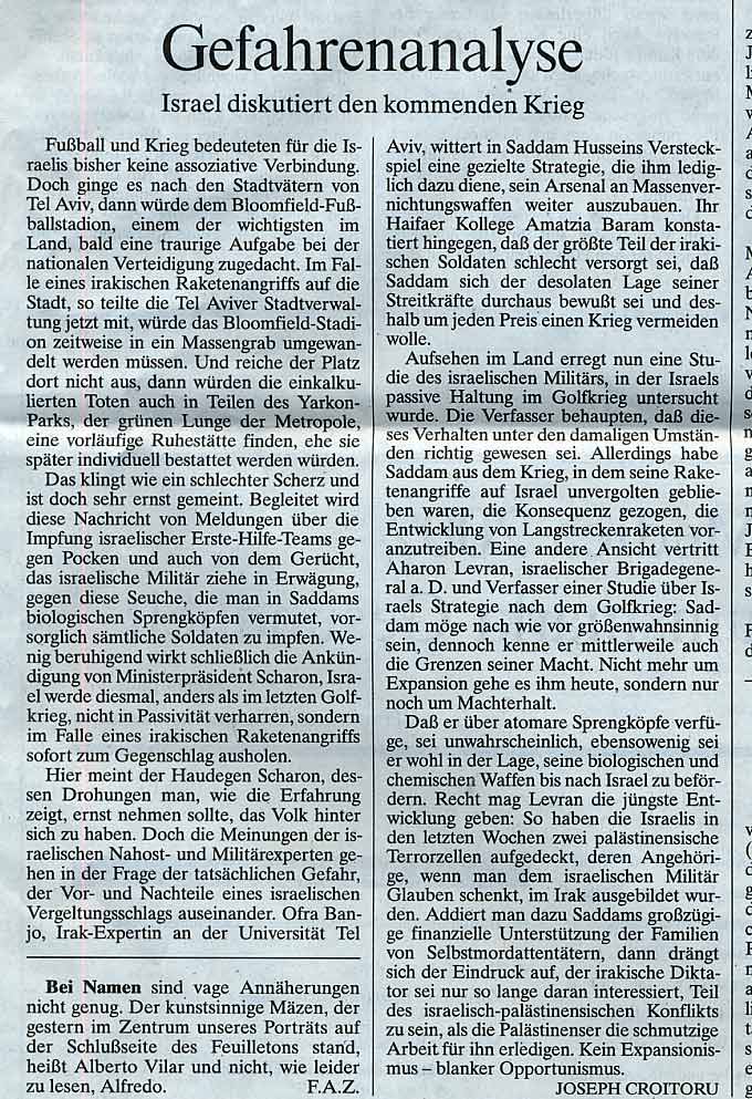 Und Sloterdijk: „Das deutsche Nein in dieser Angelegenheit ist vor allem eine symbolisch-moralische Position, eine spezifische Form der Auseinandersetzung mit dem Sonderweg der USA. Der Begriff ,rogue state‘, mit , Schurkenstaat‘ übrigens eher unglücklich ins Deutsche übersetzt, hat in der westlichen Politik seit einigen Jahren Hochkonjunktur. In der Biologie steht , rogue‘ für das wieder ausgewilderte Einzelgängertier, das abseits von der Herde durch den Busch streift. Die beiden ,rogue states‘ der gegenwärtigen Weltpolitik sind, so gesehen, die USA und Israel, die jede Art von Alignment mit der internationalen Staatengemeinschaft aus dem Grundansatz ihres Selbstverständnisses heraus ablehnen, weil sie beide davon ausgehen, dass Nicht-Israelis beziehungsweise Nicht-Amerikaner sich in die besondere Situation dieser beiden Länder nicht einfühlen können. Das bestärkt sie auch in ihrer Neigung, die Fähigkeit zum Selbstmandat in einem überdurchschnittlichen Ausmaß auszuüben.“