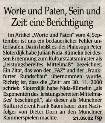 Gewiss könnte Julian Nida-Rümelin das Ressort verlässlich weiter führen. Allerdings stehen ihm auch andere Wege offen. Die Universität Göttingen wäre froh, wenn er auf seinen Lehrstuhl für Philosophie zurückkehren würde, ein Ruf an die Universität München ist nicht ausgeschlossen. Nida- Rümelin hat den Philosophen immer strikt vom Amtsinhaber getrennt und zugleich viel dafür getan, im Fach präsent zu bleiben. Eine Rückkehr in denBeruf wäre für ihn keine Niederlage.