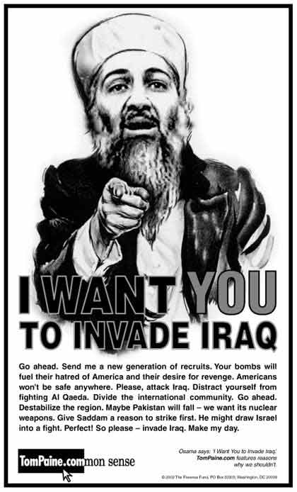 Bin-Laden- Anzeige: "I Want You To Invade Iraq"Bin-Laden- Anzeige: "I Want You To Invade Iraq"