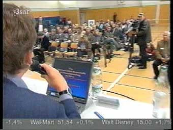 Sloterdijk: Die Alternative Schröder-Stoiber wurde im Wahlkampf zwar hartnäckig als Richtungswahl verkauft, doch in Wahrheit handelte es sich um eine reine Kanzlerwahl. Die polemischen Zuspitzungen waren ein Ausdruck des systemüblichen Polarisierungsprozesses, nach welchem man einer Wählerschaft alle vier Jahre suggeriert, sie solle sich anders entscheiden als beim letzten Mal. Stoiber und die Union mussten deshalb alles daransetzen, die Suggestion aufrechtzuerhalten, Schröder sei abwählbar und durch einen Kandidaten ersetzbar, der manches anders und manches besser machen könnte.